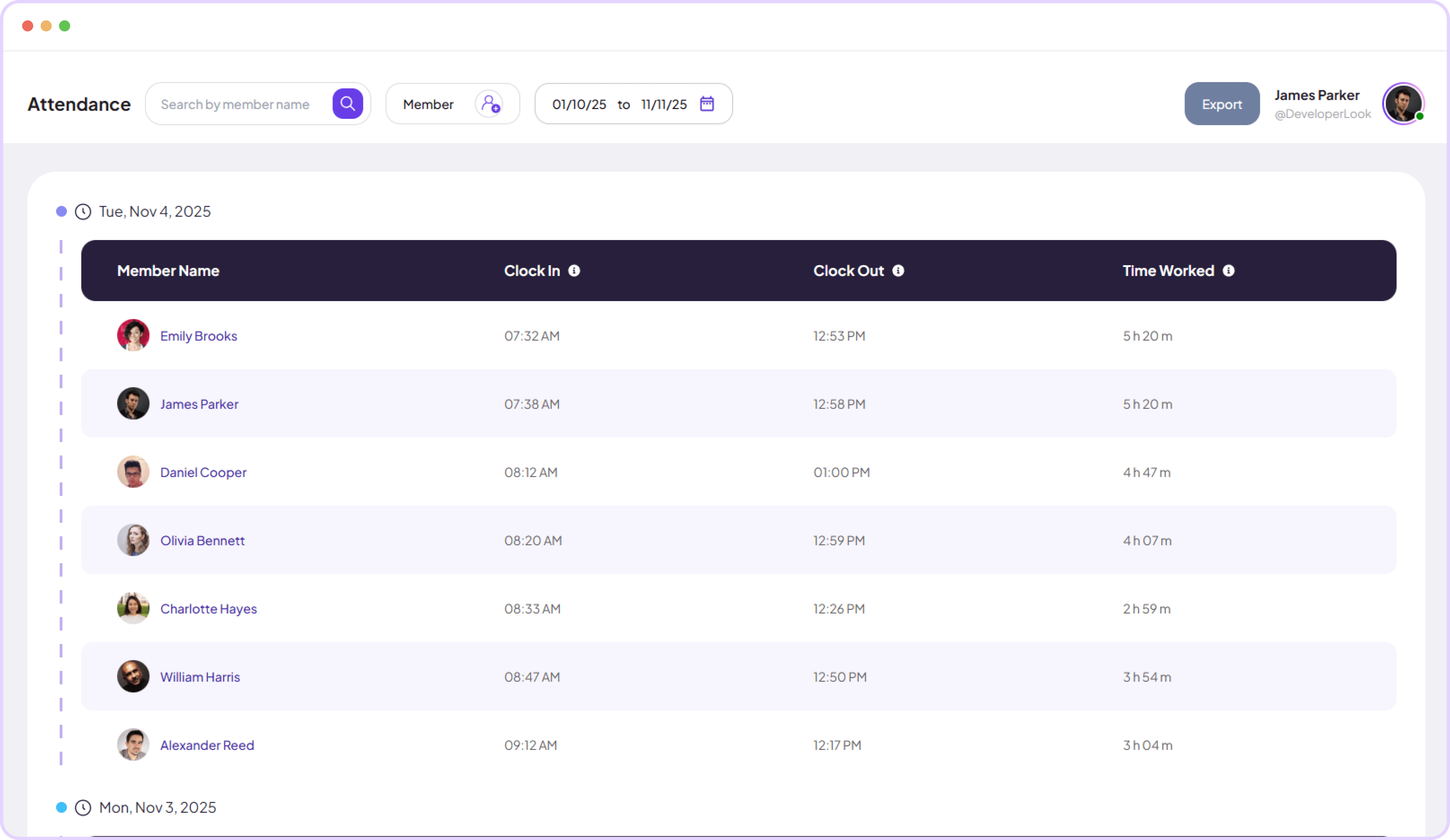 Monitor check‑ins, attendance summaries, and daily logs in a clean dashboard that keeps your team organized and accountable.