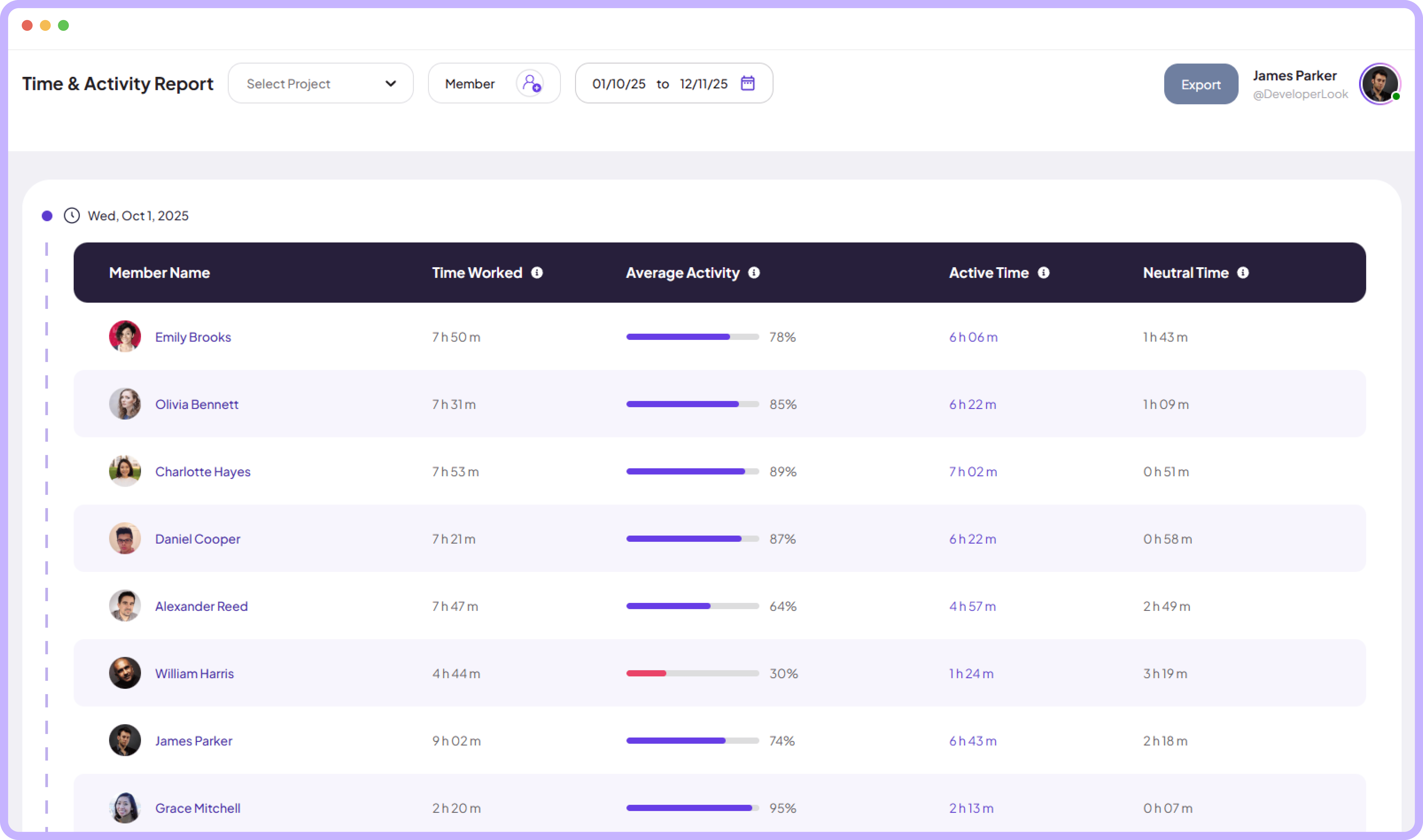 Gain full visibility into team performance with detailed activity reports that help you spot trends and improve productivity instantly.